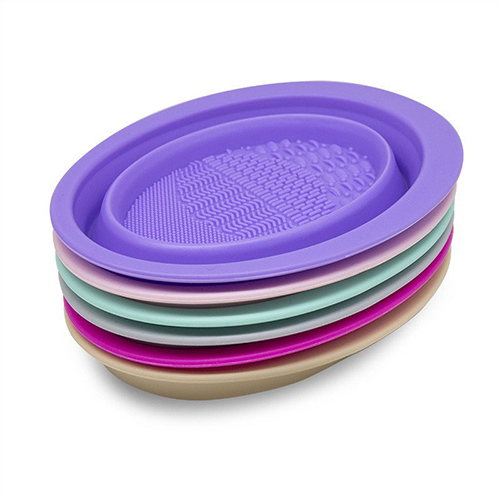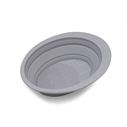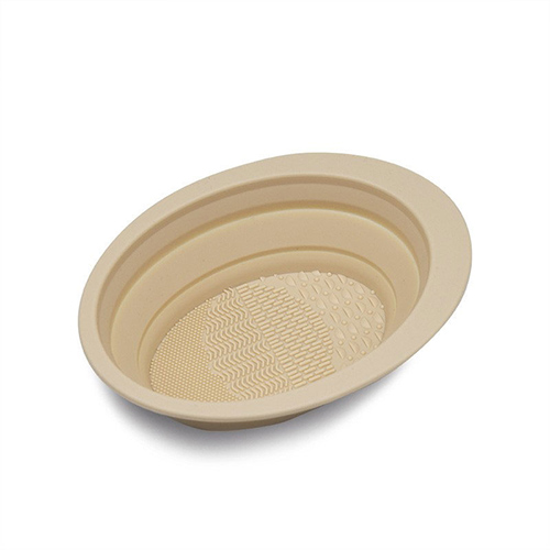 矽膠材質的碗,上麵有三種不同的凸起,能照顧(gù)到每種化妝刷。