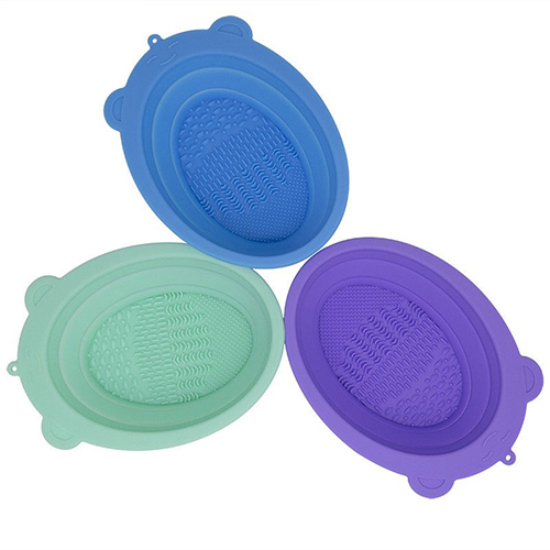 矽膠材質的碗,上麵有三種不同的凸起,能照顧到每種化妝刷。